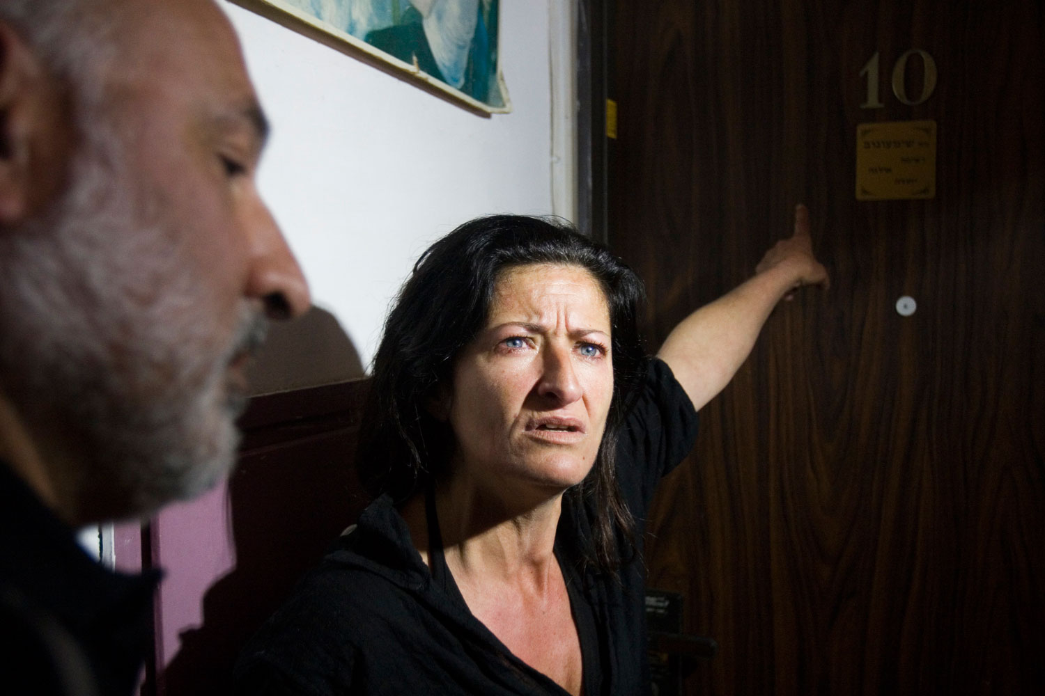 |  راحيل أم عزباء مع حاييم بار ياكوف ناشط في مجال حق السكن، نجح في منع ترحيل راحيل وعائلتها  من بيتها في يبنا، نيسان 2008
