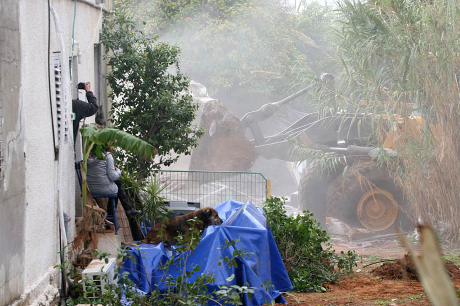سكان حي كفار شاليم في تل ابيب تقوم بتصوير عملية هدم لبيت في الحي، كانون أول 2007.