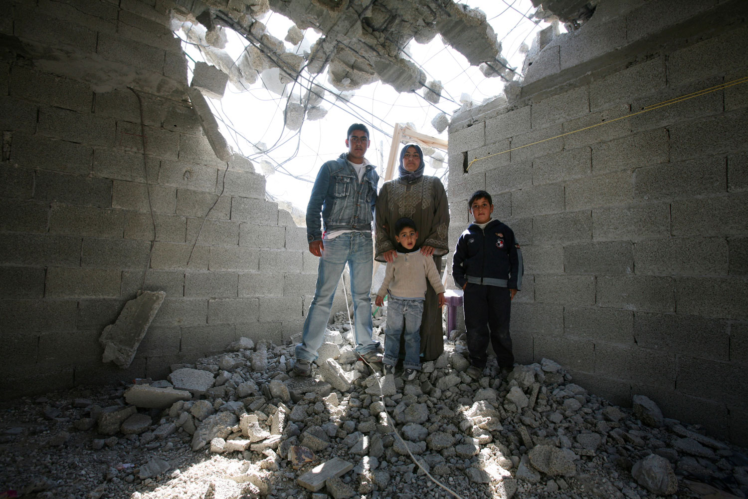 عائلة عباس تقف على انقاض منزلها في حي راس العامود في القدس الشرقية بعد ان قامت بلدية القدس بهدمه في كانون ثاني 2007